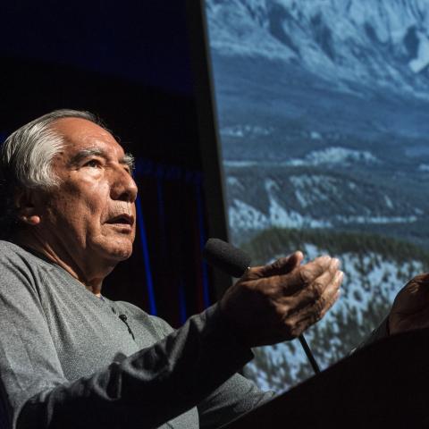 “We need to observe history (the path you come from), understand the present (the top of the mountain), and look at possibilities of the future (the things you can see) with the idea of spirit and resonance, a participation of the world that indigenous people have always had,” Dr. Cajete explained, to an attentive audience at The Banff Centre’s Max Bell Auditorium on September 4, 2014.