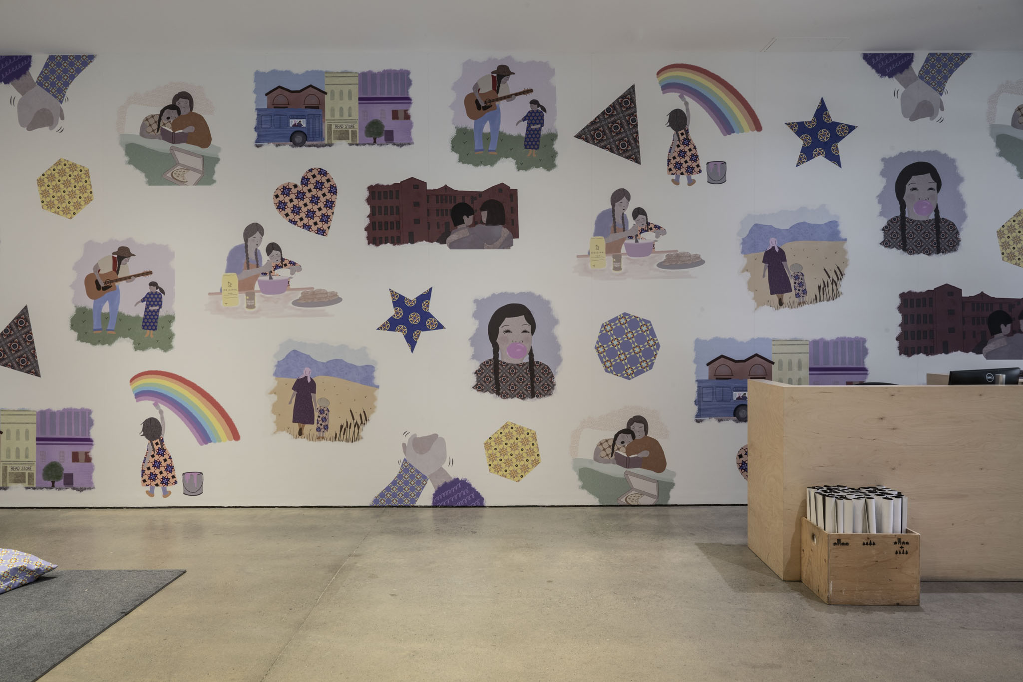 We wanted to create a space that was very inviting and interactive. I think it creates a feeling of being home or an extension of home, which is really my experience with art. My mom's art studio is at home, so I feel like it's an extension of that.