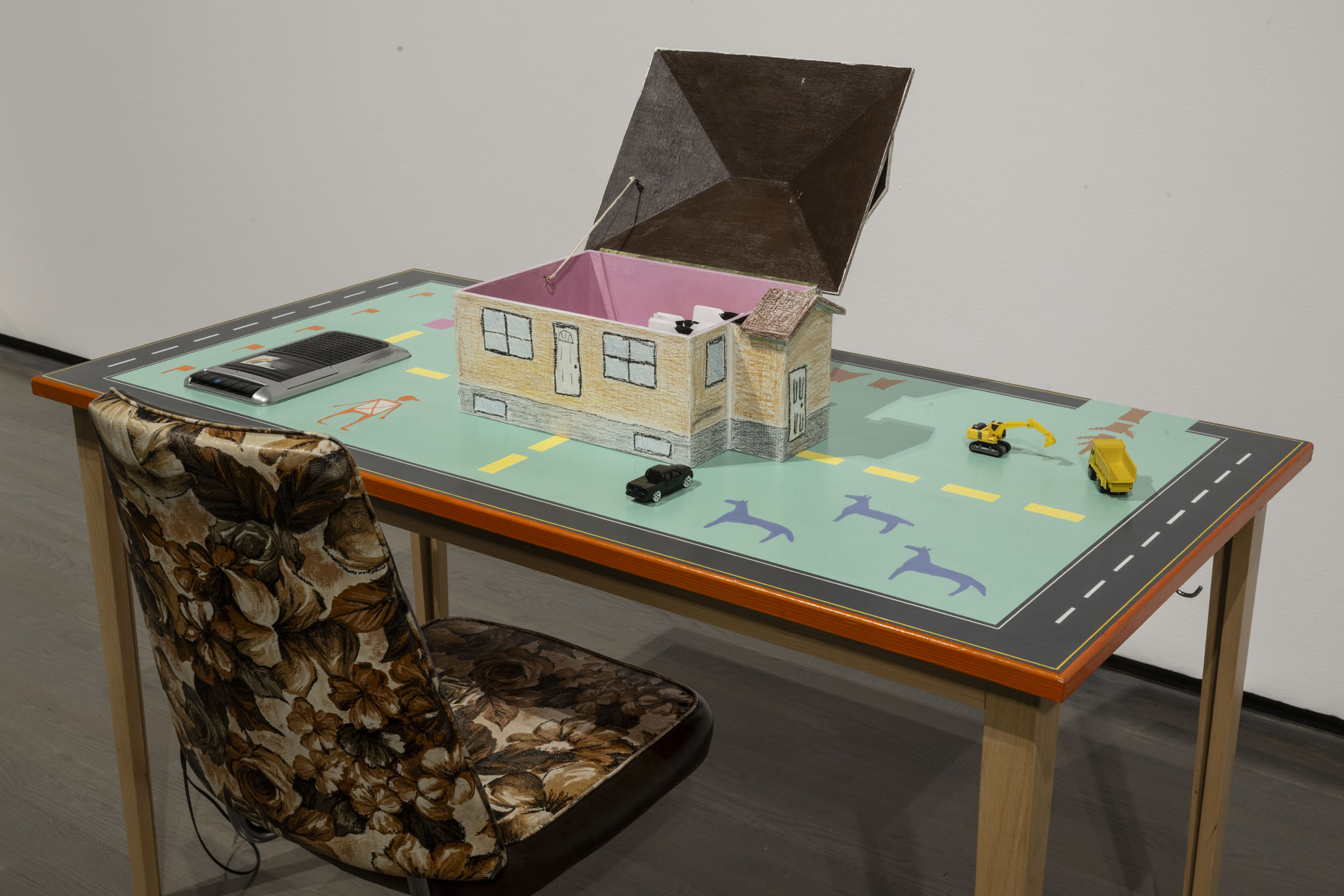 Installation view of Elliptical Lineages, Walter Phillips Gallery, Banff Centre for Arts and Creativity, 2025. seth cardinal dodginghorse, nasagha (home) , 2025, courtesy of the artist. Photo: Rita Taylor.