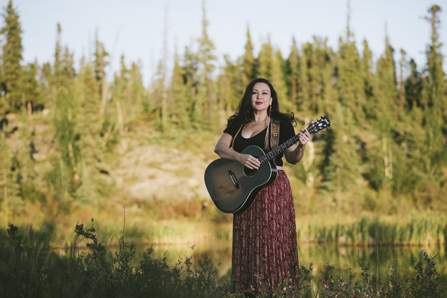 Dene singer-songwriter Leela Gilday, was born and raised in the Northwest Territories, and her decades-spanning career is based on creating music about the people and the land that created her. Leela has toured extensively across Canada and through the United States, Europe, Greenland, Australia, and beyond, and her fifth album, North Star Calling, was awarded the Indigenous Artist of the Year JUNO Award in 2021. Gilday is a musical force who blends folk, roots, and Indigenous musical traditions into a contemporary sound inviting listeners on a journey of resilience, identity, and connection. She performs at the Margaret Greenham Theatre at Banff Centre at 7:30 p.m. on Wednesday, June 4.