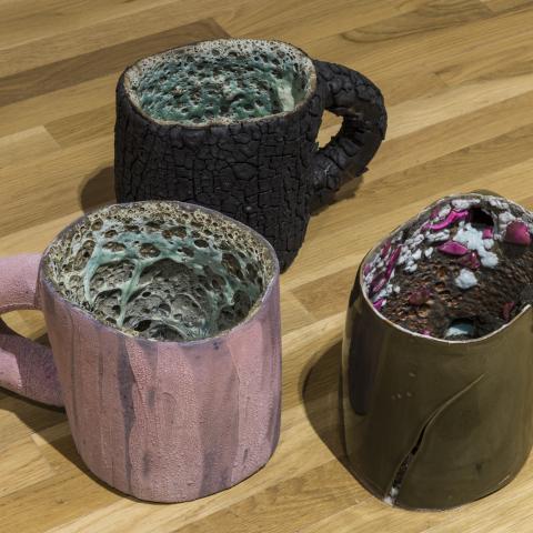 Be Mysterious is an exhibition about objects. The objects you will meet in the exhibition, while being artworks in their own right, are there to disrupt our understanding of the things in our everyday life. Viewers will encounter a wishing-well filled with a peculiar blue substance, oversized mugs sprouting stalagmites, a houseplant made of clay, an oversize rag-rug the exact width of an oil pipeline. The lives of these artworks are imbued with personalities and tasks of their own. Some are deviant and poorly behaved, others shock and surprise, while some invite and provoke. The form of these works vary; there are videos by artists Joo Choon Lin and Daniel Jacoby, ceramics by Patrick Jackson and Alex Morrison, weavings by Brent Wadden and Rebecca Baird and a sculptural intervention by Mark Clintberg.