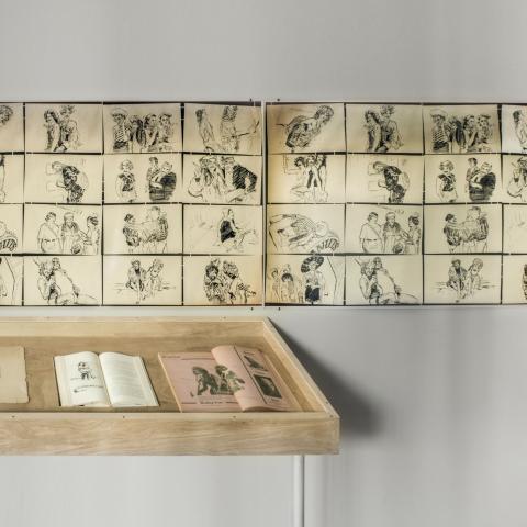 As the first iteration of this ongoing research, TO BECOME WHOLE (THE WHOLE ISSUE) assumes the Almanac's organizational logic as a method of interpreting a selection of ephemeral works by its principal editor and designer, Ken Coupland. Addressing the instructional possibilities of the Almanac's content, fragments of Coupland's work — including postcards, illustrations, prints and books — in addition to the Almanacs themselves, are arranged here alongside secondary print materials and photographs drawn from The Banff Centre's Archives.