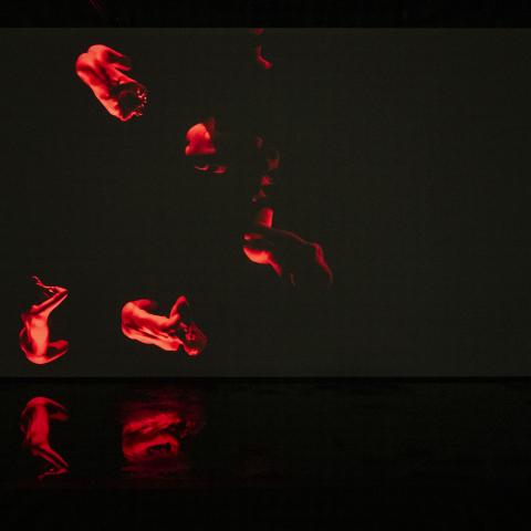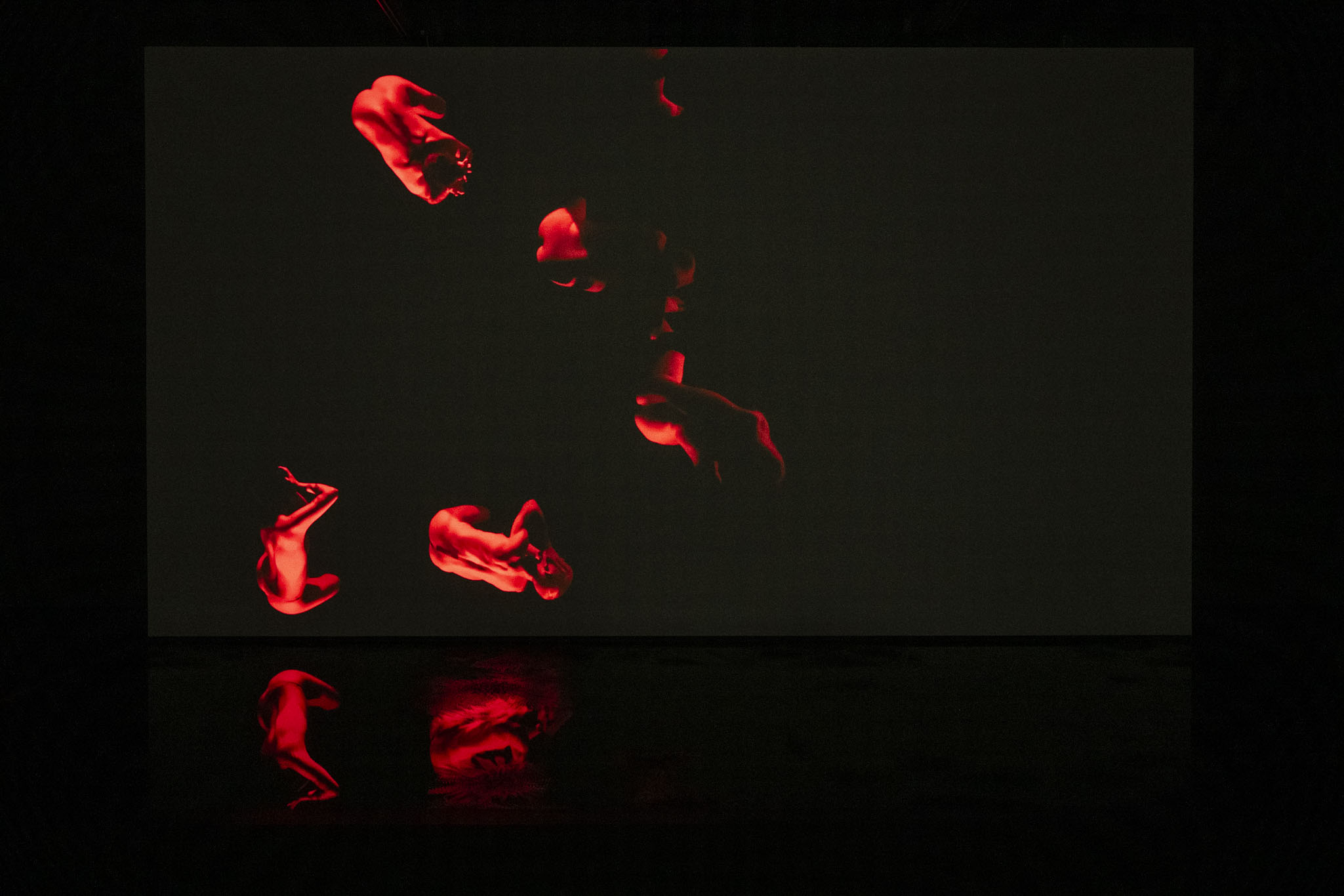 The film installation captures the live dance performance Human Measure created with choreographer Jasmine Albuquerque, set in a theatre that Cassils transforms into an analogue photography darkroom, lit by red safety lights. The dancers’ gestures undulate between moments of tenderness to scenes of brutality, interpreting themes of self-actualization and empowerment against an antagonistic political backdrop where trans* people face severe discrimination, stigma and systemic inequality. Albuquerque’s choreography is also inspired by dancers' participation in self-defense workshops, reconfiguring threats of violence into poetic compositions reflecting the group’s agency.