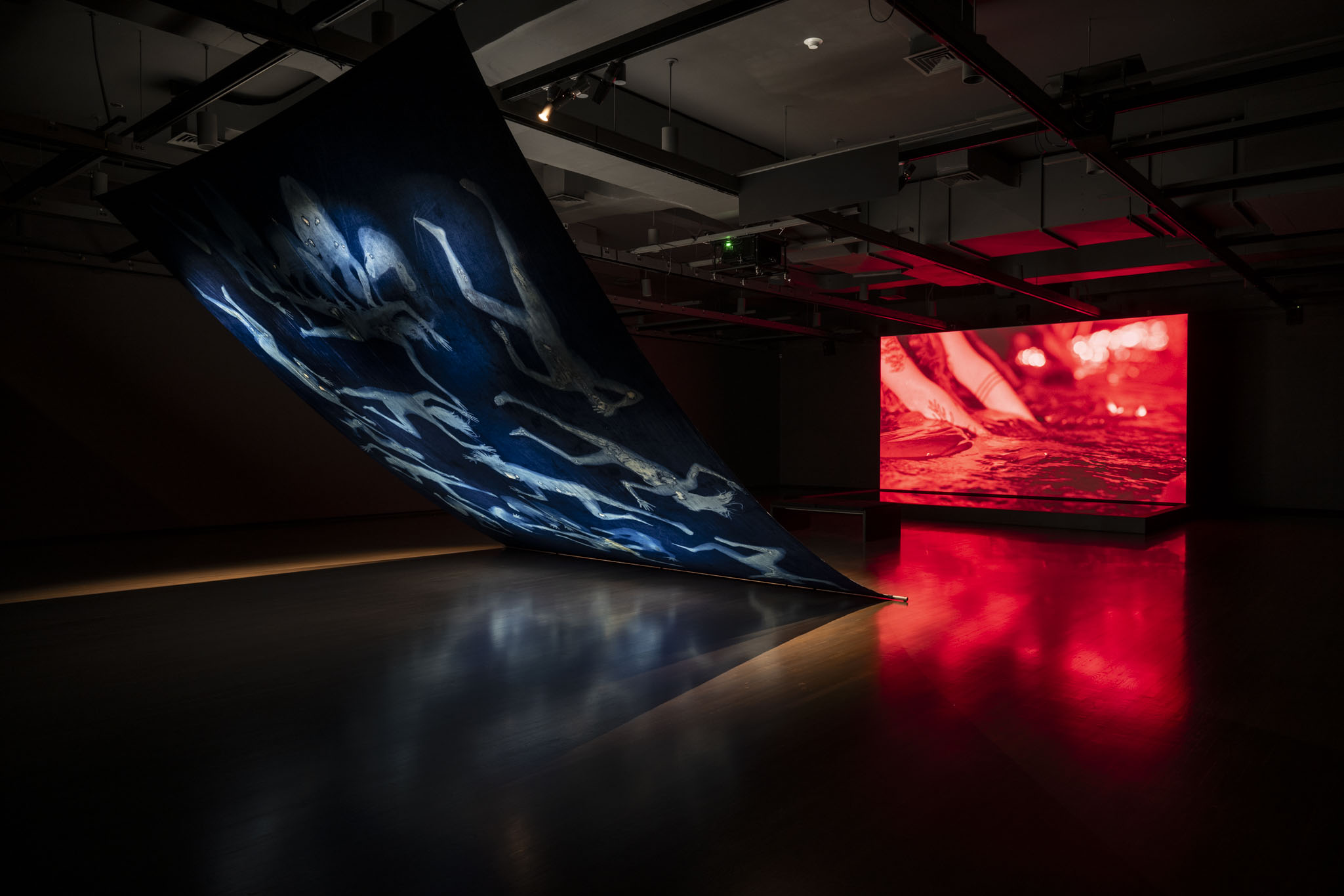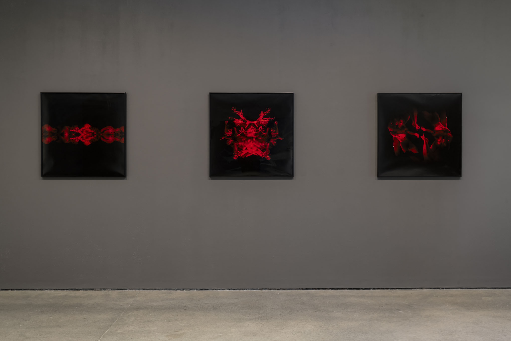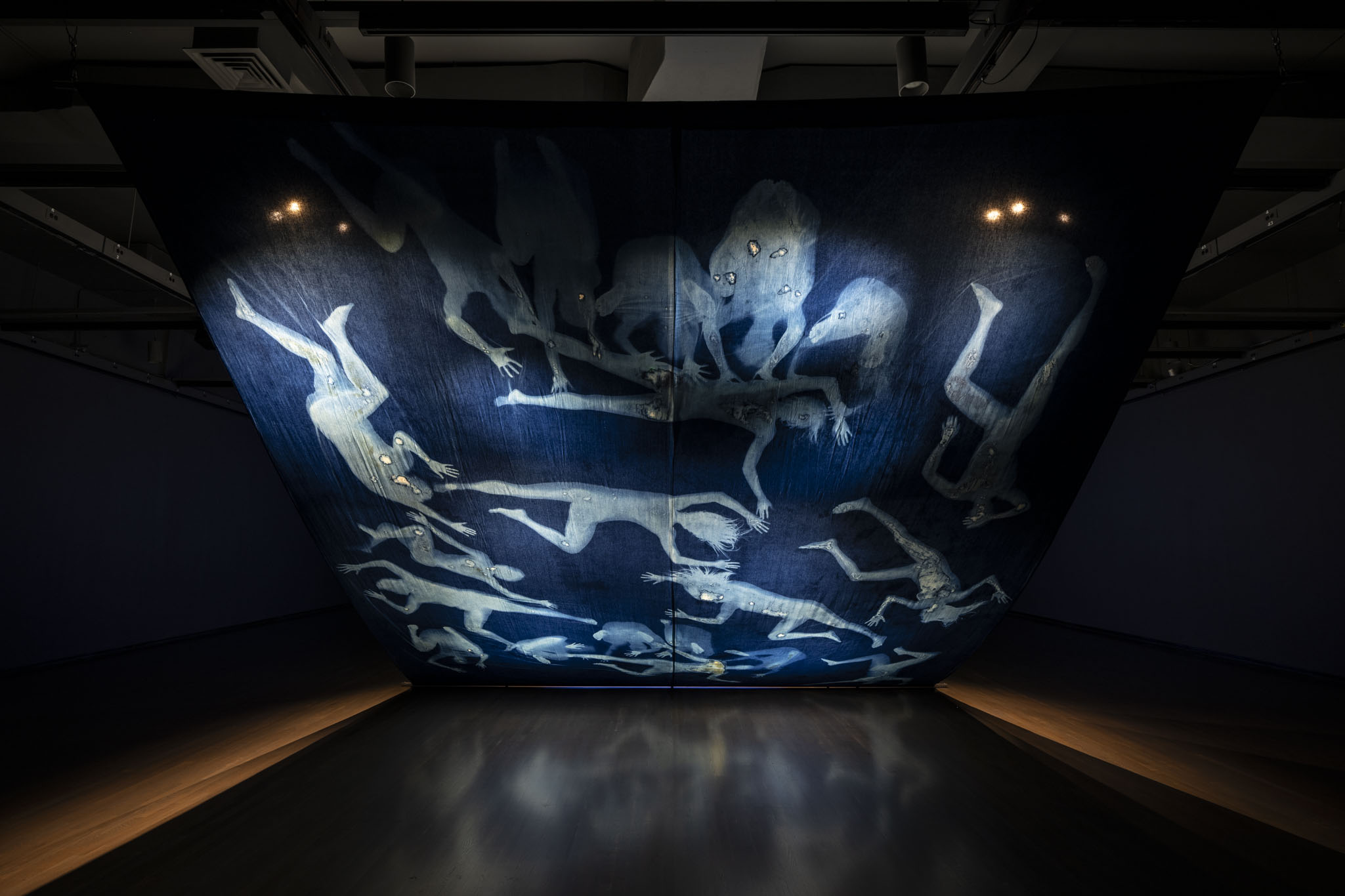 Movement exists in the interstices of performance, photography, sound and light. The title references the sequential stages of a musical score, as well as social, political, physiological and somatic movements. This exhibition includes a series of new works that translate Human Measure (2021-ongoing), Cassils’ first contemporary dance, into a visceral, immersive, visual and sonic installation. Consisting of the series of photographs, Human Measure Rorschach (2024); film installation, Movement (2024); and large-scale cyanotype, Human Measure (Developed) No. 2 (2021); the exhibition both documents the live performance while transforming it into distinct, interconnected artworks.