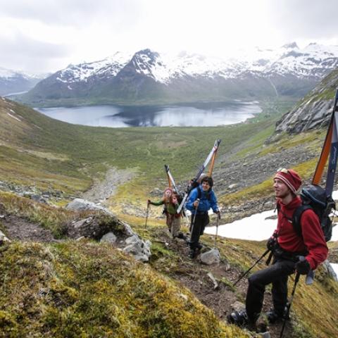After returning from this adventure, Wegge went on another remote surfing expedition to Bear Island (a small island in the middle of mainland Norway and Spitsbergen, Svalbard). However, things changed after he became a father, and seeking adventure closer to home became the name of the game. The result? Playground Lofoten, a four-part TV series that featured incredible experiences such as skiing with the northern lights dancing overhead, and paragliding and highlining with his brothers and sister above Lofoten.
