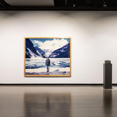 The selection of works also reflects a number of curatorial echoes that recall past exhibitions at Walter Phillips Gallery and at other institutions in Canada. Jin-me Yoon's iconic Souvenirs of the Self (Lake Louise) (1996), which originally took the form of a postcard when commissioned for the exhibition, Between Views and Points of View (1991), is here shown alongside Ayum-ee-aawach Oomama-mowan: Speaking to Their Mother (1991) that too was commissioned for the exhibition. The Shape of an Echo is also indebted to the exhibition, Speaking about Landscape, Speaking to the Land (2003-2005) curated by Richard Hill at the Art Gallery of Ontario, which brought Belmore's work in conversation with historical Canadian landscape paintings. These varied artistic and curatorial histories highlight Banff Centre as an influential site for artists across generations whose works negotiate meanings of the region's iconic landscapes and their relationship to questions of Indigenous sovereignty, national identity and belonging, human consumption and shifting discourses on art and ecologies.