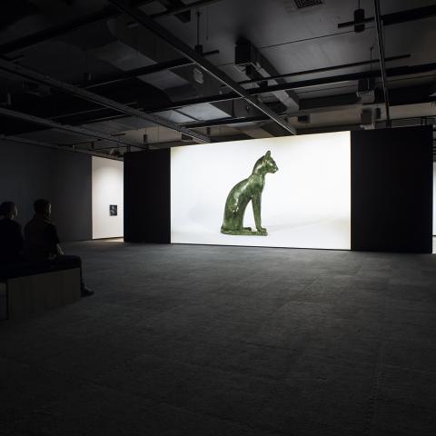 Ursula Mayer's film GONDA (2012) follows a script by writer and critic Maria Fusco and features, among others, transgender model Valentijn de Hingh. The script finds its origins in the controversial philosopher Ayn Rand's play Ideal (1934), in which the fictional actress Kay Gonda enters the lives of a group of admirers who profess that she embodies their deepest values. Oscillating between colour fields, fashion shoots, theatrical sets, volcanic landscapes, all punctuated by a small cosmology of objects, GONDA's narrative both embodies and rescinds the ideals of a filmic grammar.