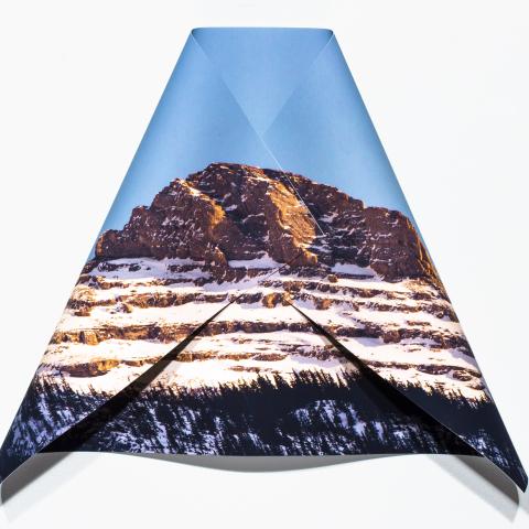 Mountain views become commonplace when thinking about our socio‐locality in Banff, an environment augmented by heightened seasonal tourism and the postcard aesthetic so often used to construct its promotional imagery. Inspired by the northwesterly vista of Cascade Mountain, through the windows that bank the exhibition space, Calgary‐based artist Tyler Los‐Jones' ongoing body of work uncannily reflects the mountains onto themselves.