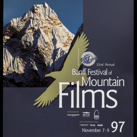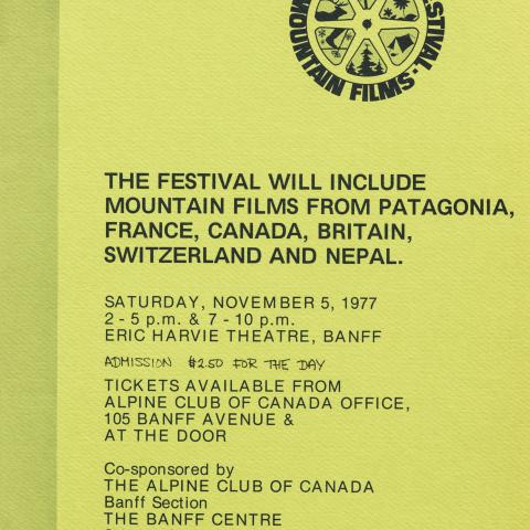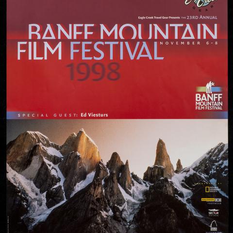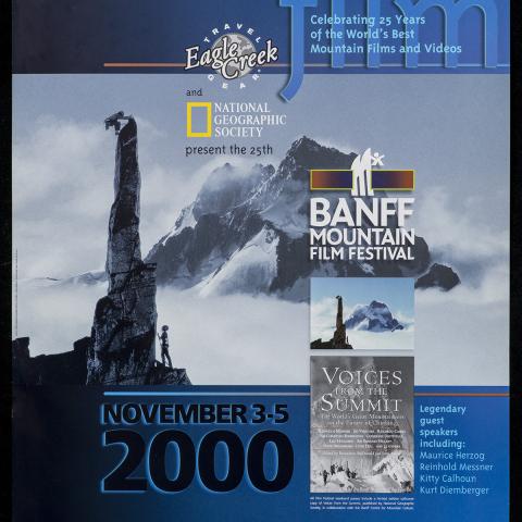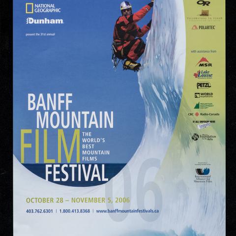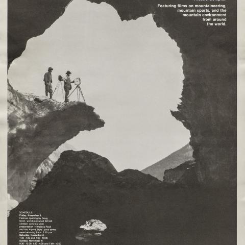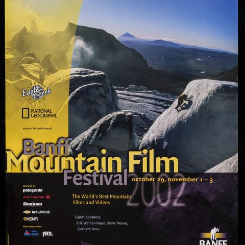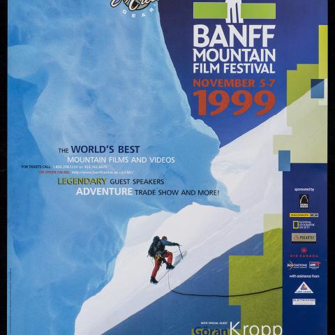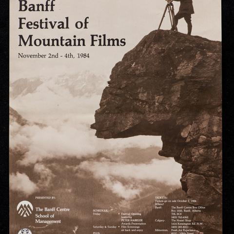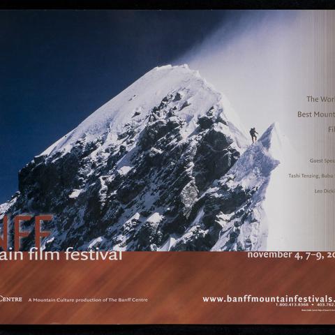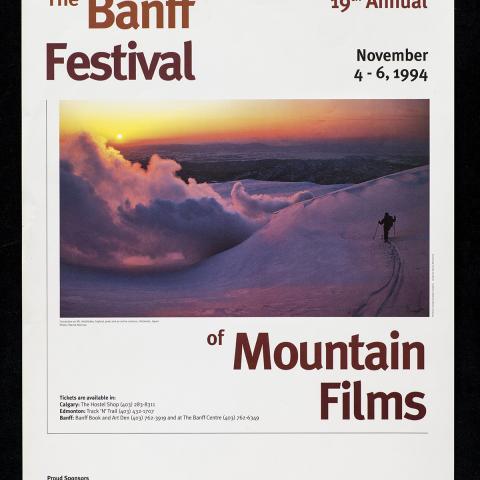 From the very beginning in 1976, the Banff Mountain Festival produced a poster to promote the events coming up that year. As the festival evolved, so did the poster - what began as a simple sheet promoting a one-day festival of climbing films has now evolved into a glossy spread advertising a nine-day event and a year-round film tour.