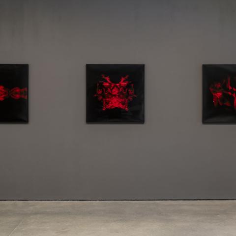 Movement exists in the interstices of performance, photography, sound and light. The title references the sequential stages of a musical score, as well as social, political, physiological and somatic movements. This exhibition includes a series of new works that translate Human Measure (2021-ongoing), Cassils’ first contemporary dance, into a visceral, immersive, visual and sonic installation. Consisting of the series of photographs, Human Measure Rorschach (2024); film installation, Movement (2024); and large-scale cyanotype, Human Measure (Developed) No. 2 (2021); the exhibition both documents the live performance while transforming it into distinct, interconnected artworks.